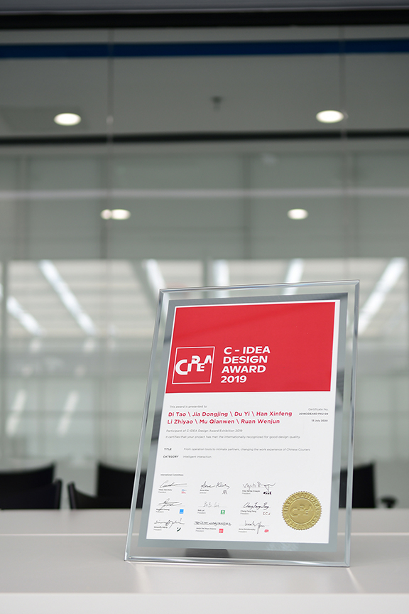 C-IDEA設計獎是由來自俄羅斯設計師協會、匈牙利美術與應用藝術家協會等不同的國際設計機構聯合發起組織的國際性賽事。大賽評委團也極具權威性,其評價標準除了美學設計角度以外,還會綜合考量作品的社會價值、創新性表現等。這就不難解釋為何一款服務于特定人群的視覺系統能夠獲得設計專業組大獎——京東物流將其設計理念確定為“從操作工具到親密伙伴,改變中國快遞員的職業體驗”。