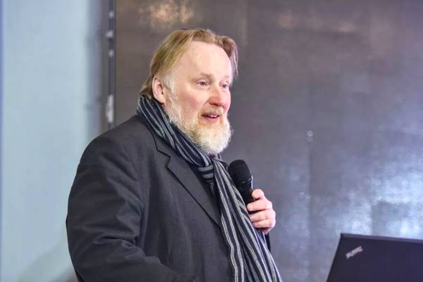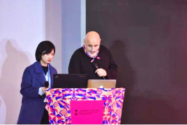 論壇的下半場由林磐聳教授主持,謝爾蓋·謝洛夫首先上臺,他的演講題目是《Golden Bee: Global & Local》,他認為藝術家的中心應該是“一切始于愛”。他介紹了俄羅斯先鋒派和其金蜜蜂獎的來歷,他們曾在蘇聯時期受到嚴重的打壓,在上世紀90年代后才逐漸恢復并開始了新的黃金時期,金蜜蜂也成為了俄羅斯開放的一個標志,金蜜蜂獎以海報作品為主,范疇也從手工制作轉向計算機。同時,金蜜蜂獎也會邀請一些優秀作品,以進一步促進俄羅斯海報藝術的發展。