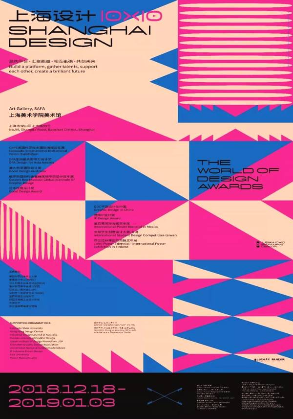 On December 18, 2018, “Shanghai Design 10×10” exhibition was grandly opened at the Art Museum of Shanghai Academy of Fine Arts. This exhibition aims to enhance the international influence of “Shanghai Design” and promote the promotion of “Shanghai Design” worldwide. The expert representatives from the 10-top design competitions attended the opening ceremony, they are:Chairman of Taiwan Design Alliance, Chairman of Chinese Industrial Designers Association, Chairman of Taiwan Cultural and Creative Industry Alliance Association, Host of International Student Design Competition- Taiwan, Curator of “Shanghai Design 10×10” exhibition, Apex Lin, Pang Soong;Chairman of Golden Bee Moscow Global Biennale Of Graphic Design, Dr. Serge Serov;Founder of Good Design Australia, Robert Tiller;General Manager of iF Design Award Shenzhen Company, Lin Yijun;Project Planner of DFA Design Award of Hong Kong Design Centre,Isabella Chow; Chairman of Shenzhen Graphic Design Association, Xu Lixian;Chairman of Lahti Poster Triennial - International Poster Exhibition In Finland, Pekka Loiri; Member of Alliance Graphique Internationale, Finn Nygaard;President of the Korean Association of Industrial Artists (KIAA),consultant of Korea Modern Design Association (KECD), consultant of Korea Visual Information Design Association (VIDAK), Baik Kumnam;AKQA Shanghai’s Executive Creative Director, Global Visual Image Creative Design Director of Nike, Eric Cruz.