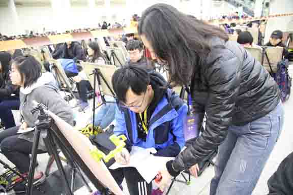 2月24日,山東工藝美術學院2018年招生專業考試設計美術類在濟南舜耕國際會展中心考點開考。