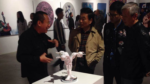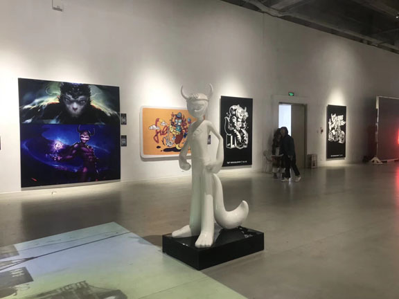 龍在中華傳統文化中已深入人心,它有著不可動搖的形象。顧群業對“龍”這一文化意象進行重新認識并解讀,讓這一形象成為他多年為之努力和探索的一個精神象征。顧群業創作的“龍”將充滿世人智慧的兩個形象合二為一,這就是孫悟空和狐貍。孫悟空是人們心中英雄的化身,他智多技高,在民間文化中寄托著忠誠、嫉惡如仇的寓意,代表了機智、勇敢、聰明、活潑的神明形象;而狐貍則富含我們俗話常說的“夾著尾巴做人”,“一不小心漏出狐貍尾巴”等等充滿智慧的比喻。除此之外,這個形象還融入了魔鬼的角、外星人的眼,這與龍的鹿角、魚鱗、蛇身、鳳爪或者是牛鼻子等等“龍”的生成概念具有一致性。顧群業把他創作的新形象也命名為“龍”。這個形象一出現就深入人心,曾現身香港國際授權展,也出現在各大當代藝術展覽中,并發展出了眾多的藝術衍生品,它被印成T恤穿在了喜愛它的人身上,也被展示在眾多公共空間中。從展覽作品來看,除了顧群業為之設定的核心理念沒有變,大多數作品已經完全顛覆了“龍”的原有形象,體現了藝術家們令人贊嘆的想象力和表現力。各種新媒體藝術手段的運用,也給觀眾帶來完全不同于以往的體驗。