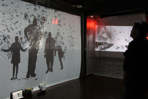 中國舞臺美術學會曹林會長,上海戲劇學院韓生院長,中國舞臺美術學會蔡體良榮譽會長、 季喬副會長、周正平副會長、 鄭慶華副秘書長 ,中國文化管理協會文化產業委員會崔興亮會長 ,數虎圖像股份有限公司李銳總經理 ,環宇文化科技有限公司林鵬經理,以及清華大學美術學院、中央戲劇學院 、中國美術學院 、天津美院 、四川美院等眾多老師、同學紛紛來《影&蝶》作品前參與互動、參觀指導,受到一致好評。