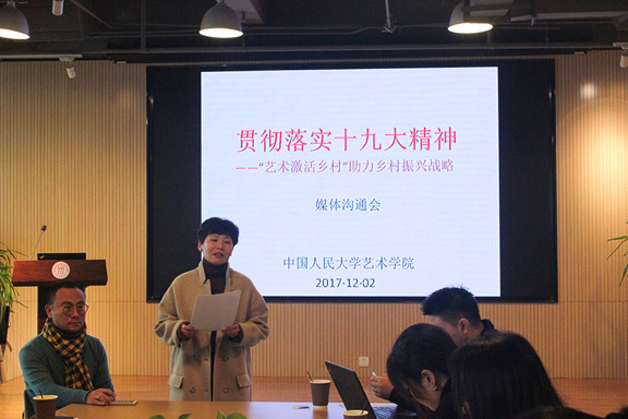 2017年12月2日下午,中國人民大學藝術學院公共藝術工作室“藝術激活鄉村”項目媒體溝通會成功舉辦。項目負責人中國人民大學藝術學院設計系主任、院長助理陳炯教授詳細介紹了由中國人民大學藝術學院公共藝術工作室組成的“藝鄉建”團隊近年來致力于“藝術激活鄉村”的系統性研究和實踐,總結了一套通過藝術手段進行扶貧,激活鄉村傳統文化的創新性方法論。