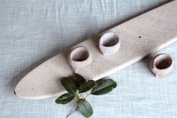 陳炯介紹了一款他利用用當地石材設計制作的茶臺。他介紹,石頭本身是堅硬的東西,我想改變它在人們心中的印象、質感的認知,所以在茶臺中我采用了“葉子的形狀”,可以給茶臺營造一種飄渺質感,石頭的硬和葉的的輕盈結合,是一種沖突的語言表達。”根據保留下來的手工技藝進行升級開發,既可以創造新的經濟效益又能夠讓賦閑在家的村民們從新調動起來帶來較好的社會效益。同時,這種創化和工作場景又能夠留住客人,讓前來休閑的城市人找到一種濃濃的田園風情,讓城市人找到新的體驗,體驗消費等系列體驗經濟對樊家灣來說,將是一個重要發展方向。這是藝術介入鄉村建設的價值之一。