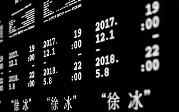 作為本次展覽最重要的呈現,觀眾在“徐冰”開幕日得以有機會觀看完整版的《蜻蜓之眼》。這部影片使用網絡時代泛濫的公共監控視頻作為材料,以一種敘事文學作為主線,講述了一個無法確認自己身份的女孩——“蜻蜓”的故事。徐冰在影片公映會后談到,在今天無處不監控的社會,《蜻蜓之眼》印證了《楚門的世界》的想象,而就像其他作品一樣,觀眾好像永遠找不到他想說什么,世界變得越來越不清楚,這部電影就在提示這樣一種模糊不清的狀態:這是電影嗎?人的邊界在哪?真實與虛擬、監控與被監控之間的關系是什么?