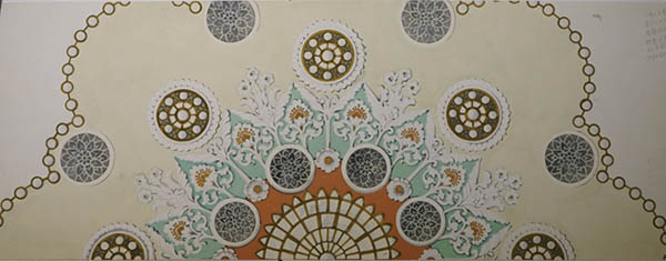 建國初期,百廢待興。常沙娜破格成為清華大學(xué)營建系助教,在林徽因的指導(dǎo)下,常沙娜開始大膽地將敦煌圖案運(yùn)用到現(xiàn)代生活所需的工藝美術(shù)設(shè)計(jì)中,并且常沙娜先后參加了包括蘇聯(lián)展覽館、首都劇場、民族文化宮、人民大會堂在內(nèi)的多項(xiàng)建筑裝飾設(shè)計(jì)。敦煌的傳統(tǒng)裝飾功底、美國開拓的藝術(shù)視野、以及梁思成、林徽因設(shè)計(jì)理念的影響,使常沙娜脫穎而出。傳統(tǒng)底蘊(yùn)兼具現(xiàn)代氣派的裝飾風(fēng)格,成為常沙娜的設(shè)計(jì)特色。