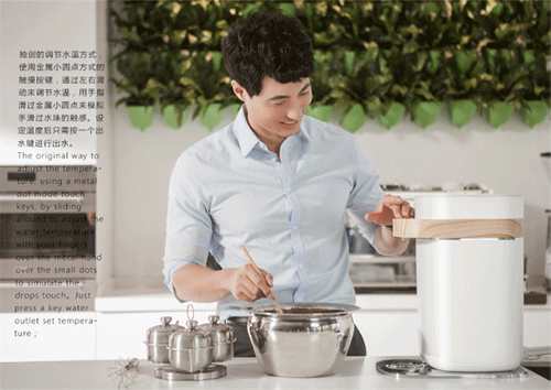北京洛可可專門為中國人設計的節省空間的廚房臺上智能速熱凈水機。它體積小巧,能夠直接和家用水龍頭連接使用。可以同時滿足凈水、熱水的使用,并且手機APP端能自定義飲水場景,隨時喝到想要溫度的凈水。