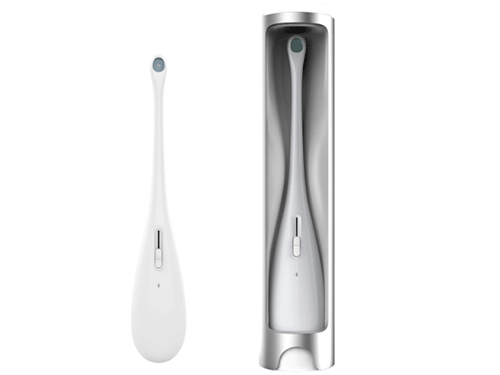 “PT-伢偵探”是由廈門洛可可設計的一款智能、超輕、便攜的早期齲齒檢測儀,通過口腔微生物的熒光效應,準確檢測牙菌斑、牙石、齲齒、牙周炎的病灶;它的大小僅為23.3*4.2*2.6(cm),所配充電保護外殼5.5*3*26.3(cm);具備觀察與檢測兩種功能,一鍵切換,使用后放置保護外殼,倉門關閉,將自動開啟紫外線消毒,確保干凈衛生;通過wifi或熱點,無線鏈接配套APP,可完成觀察、檢測、拍照、攝像、分析、醫療服務等功能,且通過APP即可方便聯系專業口腔醫師,預約治療。