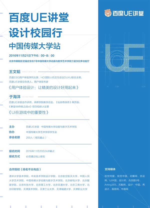 主辦:百度UE講堂、中國傳媒大學動畫與數字藝術學院