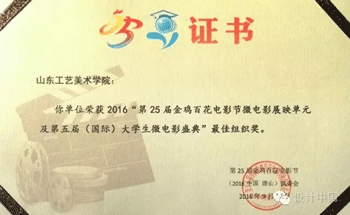第25屆金雞百花電影節(jié)微電影單元暨第五屆(國際)大學生微電影盛典于2016年9月20日在北京隆重舉行。山東工藝美術學院數(shù)字藝術與傳媒學院院長顧群業(yè)、副院長吳向陽,獲獎學生馬笑天應邀參加了頒獎典禮。