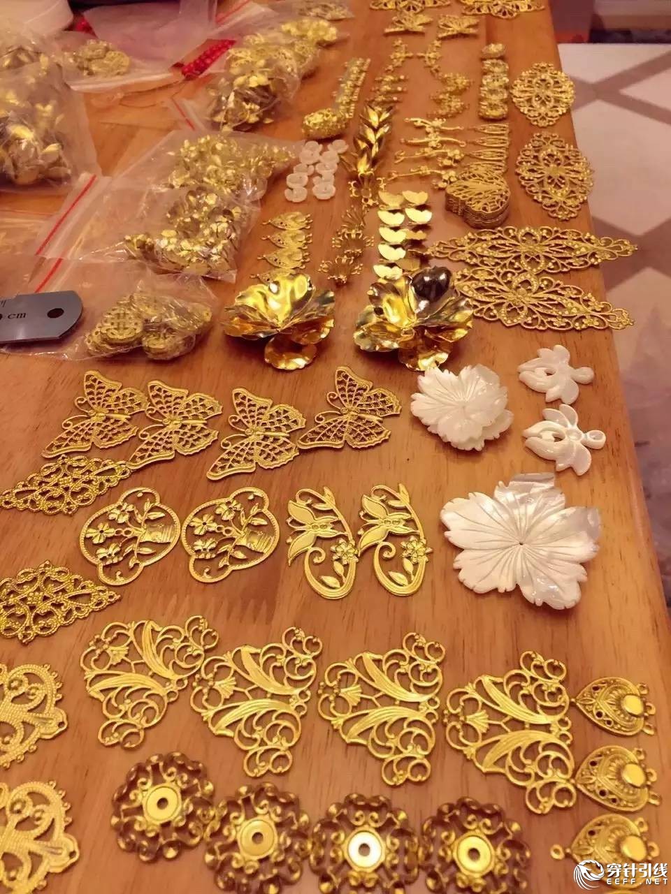 △堆積成山的原材料,金屬小配件、珠片、水鉆、羽毛、印度絲、各類面輔料......
