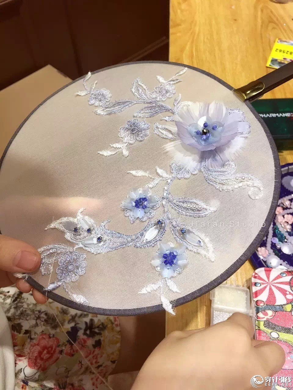 手工與扇子的相遇,琳瑯滿目的原材料,在她的手下,透過花樣繁多的技法,變換成一件件工藝美術(shù)品,賞心悅目。