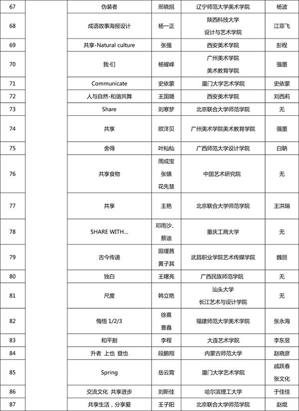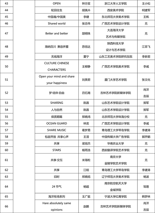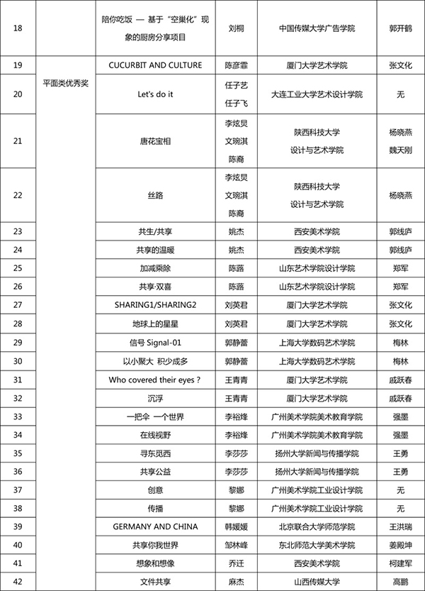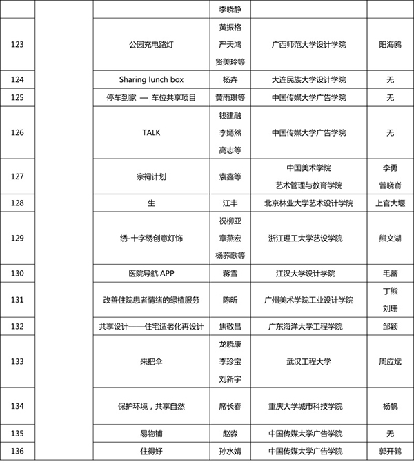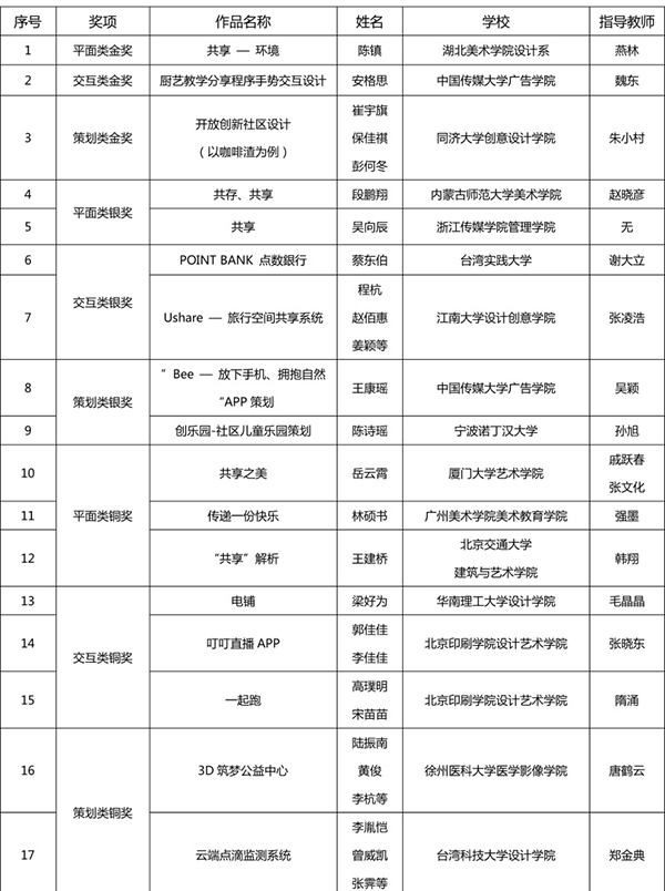 本次評審嘉賓陣容強大,均為設計、策劃、新媒體幾個方面的資深專家,包括:吳洪亮(著名策展人、藝術評論家,橫跨傳統藝術、當代藝術、現代設計、文化規劃等幾個領域的多棲學者,現為北京畫院副院長、北京畫院美術館館長、全國美術館專業委員會副秘書長);李中揚(教授,首都師范大學視覺設計與教育研究所所長、ICOGRADA國際平面設計聯合會會員、AIGA美國平面設計協會會員、中國高等教育學會設計教育委員會常務副秘書長);吳學夫(教授,中國傳媒大學藝術設計研究中心主任,教育部設計學專業教學指導委員會委員,設計評論人、策展人,擔任多種設計獎項評委);蔣華(中央美術學院設計學院副教授、著名平面設計師、AGI國際平面設計聯盟會員,擔任眾多設計競賽評審,作品入選世界范圍內幾乎所有重要的設計年展、雙年展與三年展);葉宇軒(臺灣著名跨界設計師、Yehidea品牌創意總監,曾任職4A國際廣告公司創意總監,獲紅點產品設計獎、紐約廣告獎、亞太廣告獎、世界華文廣告獎逾二百座);丁肇辰(來自臺灣,現為北京服裝學院藝術設計教授,跨足多個設計領域,專業背景包含了建筑設計規劃、數字媒體與交互設計、數字娛樂設計、時尚趨勢設計等學科);吳偉(態客民宿實驗室創始人、CEO,著名文化策劃人,中國設計創業的成功實踐者,品牌中國十大設計師,香港靳劉高設計集團高級顧問);李申(戴姆勒IT創新實驗室高級設計師、創客)。
