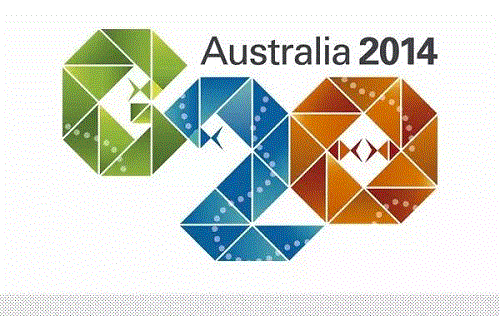 2014年G20峰會在澳大利亞的布里斯班舉行,Logo采用了大量的傳統原住民族文化的元素,由澳大利亞的原住民族文化創意機構Gilimbaa和其藝術家Riki Salam設計的。Logo 代表了不同民族的交織相容,其中的三角形代表澳大利亞各族人民、應邀的參會的客人和國際組織共赴G20峰會;Logo向澳大利亞的土著和托雷斯海峽島民及 文化致敬,Logo的設計創意來自托雷斯海峽島民用椰棕編織的圖案,相連的圖形象征澳洲原住民關于彩虹蛇的傳說,組成了“G20”字樣。