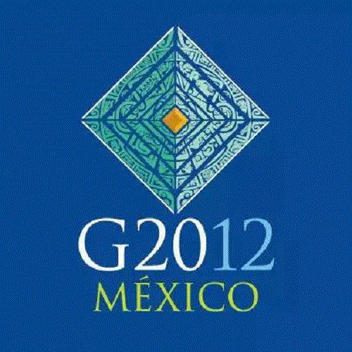 2011 年12月1日,墨西哥接替法國稱為20國集團(G20)的輪值主席國,本屆G20首腦峰會將在2012年6月在墨西哥南下加利福尼亞州洛斯卡波斯(Los Cabos, Baja California Sur)舉行。上圖為G20墨西哥峰會的官方標識,融合了墨西哥特色圖案。