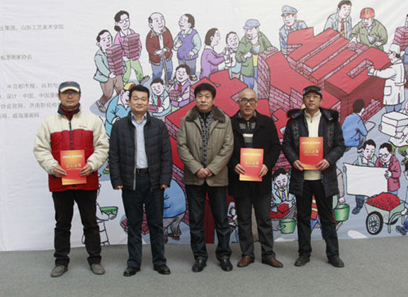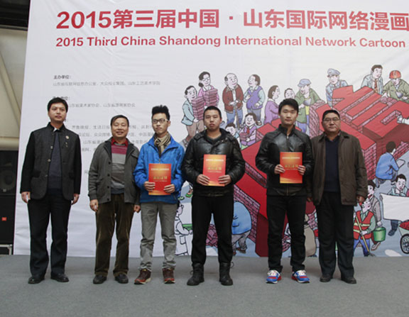 12月2日,“漫話信譽”第三屆中國·山東國際網絡漫畫大賽作品展在山東工藝美術學院長清校區美術館開幕。山東工藝美術學院副院長苗登宇主持開幕式。山東工藝美術學院副院長李新和山東省互聯網信息辦公室常務副主任李宗國,山東省漫畫家協會主席陳黎青,山東省互聯網信息辦公室新聞宣傳處處長國慶東,大眾網總編輯朱德泉,諷刺與幽默報編輯朱丞和山東省漫畫家協會副主席張梁出席開幕式。