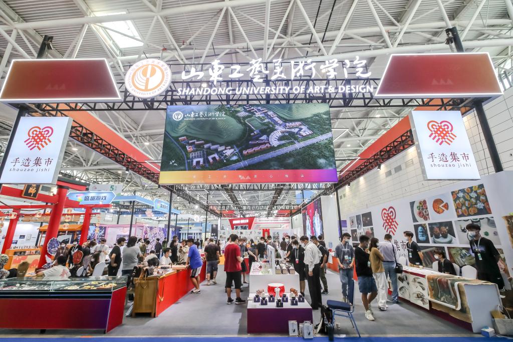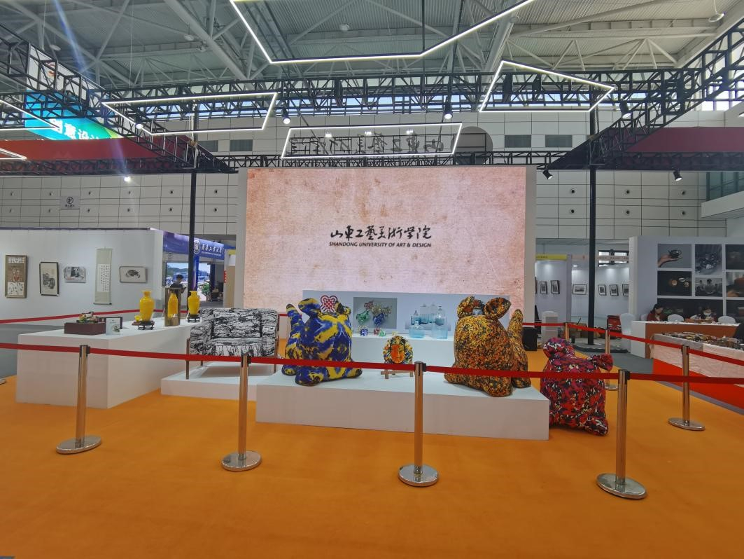 第二屆中國國際文化旅游博覽會于9月16日在山東國際會展中心舉辦,本次博覽會以“慶祝建黨百年 共享盛世文旅”為主題,設文化旅游融合、沿黃文旅、“好客山東”、創意設計、動漫游戲、文旅裝備、鄉村振興、“一帶一路”、美術精品、藝術品等10大展區。作為本屆文旅博覽會重點打造的“山東手造”精品展陳內容之一,山東工藝美術學院“手造集市”展示體驗區精彩亮相,展現了以創意設計助力“山東手造”產業高質量發展的特色舉措和產教融合新亮點。