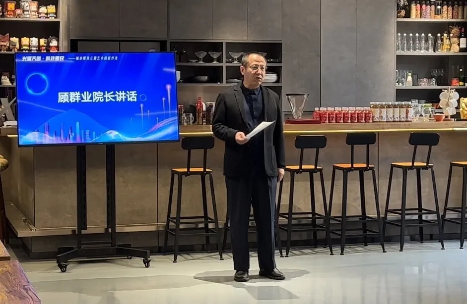 顧群業院長在致辭中指出:城市媒體立面藝術是一個新興的藝術門類,構建了多學科交叉融合的新領域。不僅與數字藝術與傳媒學院的新媒體藝術專業、動畫專業、影視專業等多個專業緊密相關,與經濟學、人類學、建筑學等大學科也相互交織。“城市媒體立面藝術”作為一種新興的公共藝術形式,直接塑造了城市文化、城市特色并提升城市居民的幸福感和獲得感。從學科建設的角度,這是一個學科交叉融合的新的專業方向,山東工藝美術學院的人文學院、建筑景觀學院、視覺傳達學院等,都參與了多方面的指導與意見。從實踐教學的角度,特別感謝宋磊和牛曉菲的團隊,組織行業協會、企業家和一線設計師參加這次沙龍交流,為產教融合、項目教學、學生就業提供了平臺。