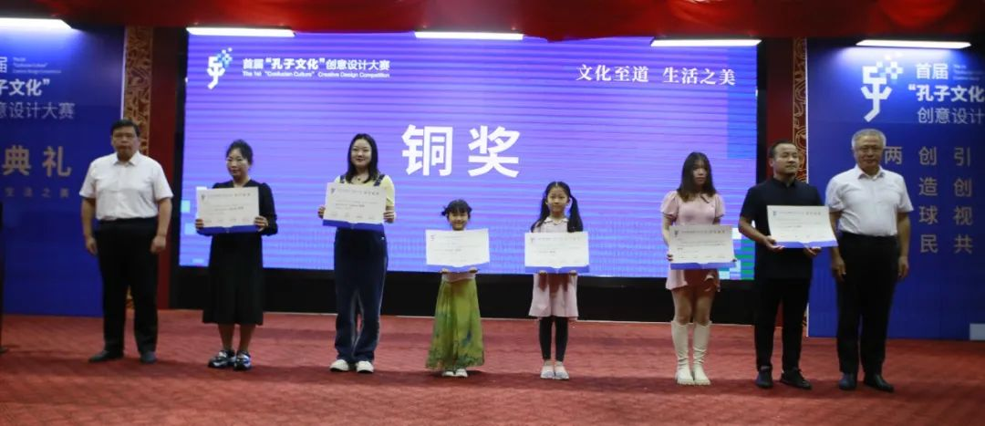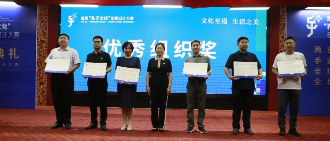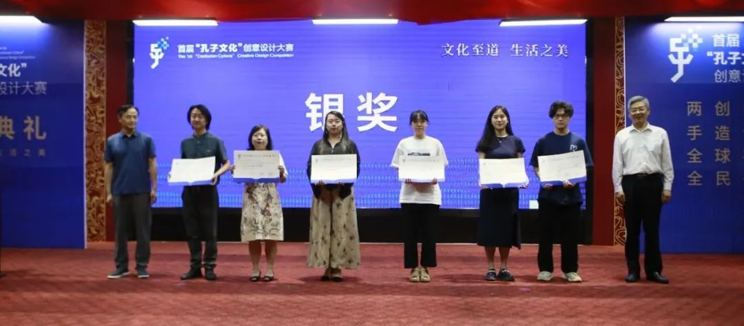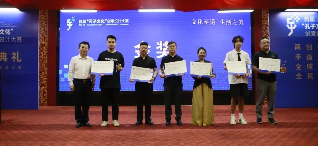 首屆“孔子文化”創(chuàng)意設(shè)計大賽自去年6月正式啟動以來,共征集海內(nèi)外各類創(chuàng)意設(shè)計作品11851件。經(jīng)過初輪評審、二輪評審、綜合評議、現(xiàn)場公證等環(huán)節(jié),評選出金獎 23 項,銀獎 44 項,銅獎 56 項,優(yōu)秀獎618項,優(yōu)秀組織獎 45項,優(yōu)秀指導(dǎo)教師獎153 項。大賽組委會邀請到了大賽指導(dǎo)單位及主辦單位領(lǐng)導(dǎo)蒞臨頒獎典禮現(xiàn)場,為獲獎?wù)哳C發(fā)榮譽證書。