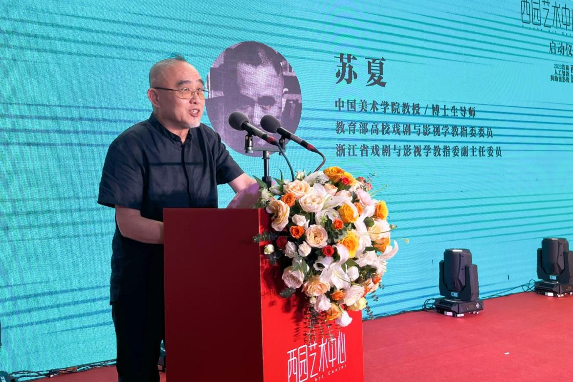 教育部高校戲劇與影視學(xué)教指委委員、浙江省戲劇與影視學(xué)教指委副主任委員、中國美術(shù)學(xué)院教授、博士生導(dǎo)師蘇夏,湖北美術(shù)學(xué)院教授、中文核心期刊《電影評(píng)介》學(xué)術(shù)總監(jiān)葉佑天,中國美術(shù)學(xué)院副教授唐紅平,浙江漫畫協(xié)會(huì)主席陶小明,中國美術(shù)學(xué)院互動(dòng)藝術(shù)與技術(shù)研究所所長宋建文,成都大學(xué)教授、博士生導(dǎo)師鐘遠(yuǎn)波分別代表業(yè)內(nèi)專家、主辦單位致辭,并共同為西園藝術(shù)中心揭幕。唐紅平擔(dān)任開幕式主持人。