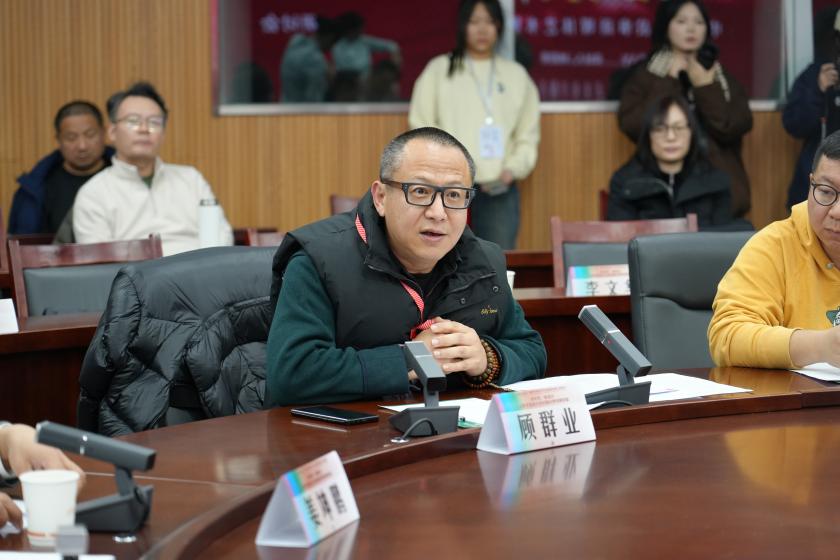 研討會(huì)開(kāi)始,由項(xiàng)目策展人、山東工藝美術(shù)學(xué)院教務(wù)處處長(zhǎng)顧群業(yè)教授詳細(xì)介紹了展覽的核心理念與學(xué)術(shù)支撐。他首先回顧了《“承古萌新”:中國(guó)年畫(huà)故事新媒體藝術(shù)展》自開(kāi)幕以來(lái)取得的顯著成果,并指出此次研討會(huì)對(duì)于進(jìn)一步推動(dòng)年畫(huà)藝術(shù)的創(chuàng)造性轉(zhuǎn)化與創(chuàng)新性發(fā)展具有重要意義,同時(shí)表示,此次展覽借助現(xiàn)代科技手段,實(shí)現(xiàn)了年畫(huà)藝術(shù)的數(shù)字化呈現(xiàn)與傳播,不僅讓觀眾能夠真切體驗(yàn)?zāi)戤?huà)藝術(shù)的魅力,也為年畫(huà)藝術(shù)的傳承與發(fā)展注入了新的活力。