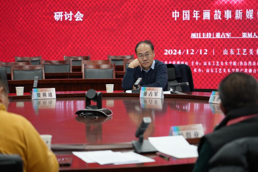 2024年12月12日,由國(guó)家藝術(shù)基金指導(dǎo)、泰山學(xué)者藝術(shù)學(xué)團(tuán)隊(duì)支持、山東工藝美術(shù)學(xué)院主辦的《“承古萌新”:中國(guó)年畫(huà)故事新媒體藝術(shù)展》學(xué)術(shù)研討會(huì)在山東工藝美術(shù)學(xué)院國(guó)際報(bào)告廳召開(kāi),本項(xiàng)目負(fù)責(zé)人為:山東工藝美術(shù)學(xué)院董占軍院長(zhǎng)。