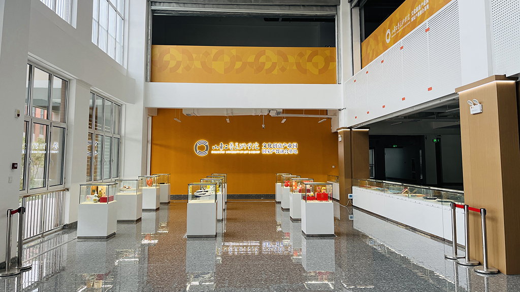 山東工藝美術學院文化創意產業園(國家產教融合基地)于2024年7月正式啟用,主要分為社會服務用房、教師科研用房和配套后勤保障用房等用途。產業園首批入駐18家企業、27個科研工作室,包括行業領先的企業設計研發部門、行業駐會機構、設計企業、教師工作室等多種類型主體,涵蓋品牌、包裝、產品、游戲、展示等多個領域方向,通過打造創意設計生態,集聚文化創意產業發展,搭建起了產教融合、校企業合作的平臺載體,形成了“企業出題、科研解題、項目合作、人才交流”的創意循環機制。