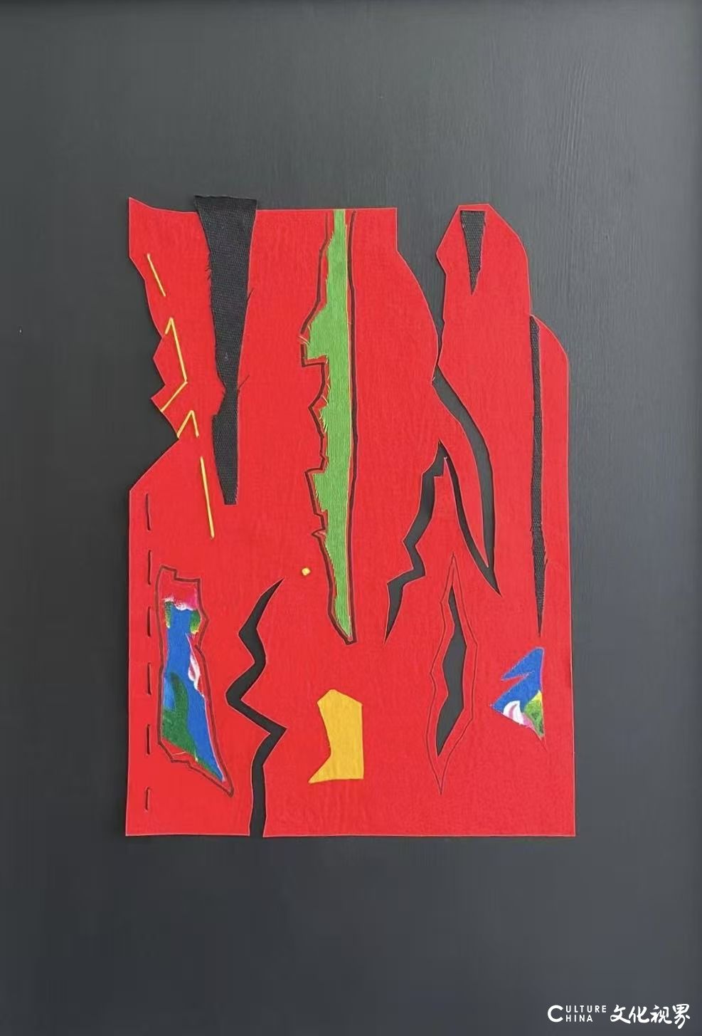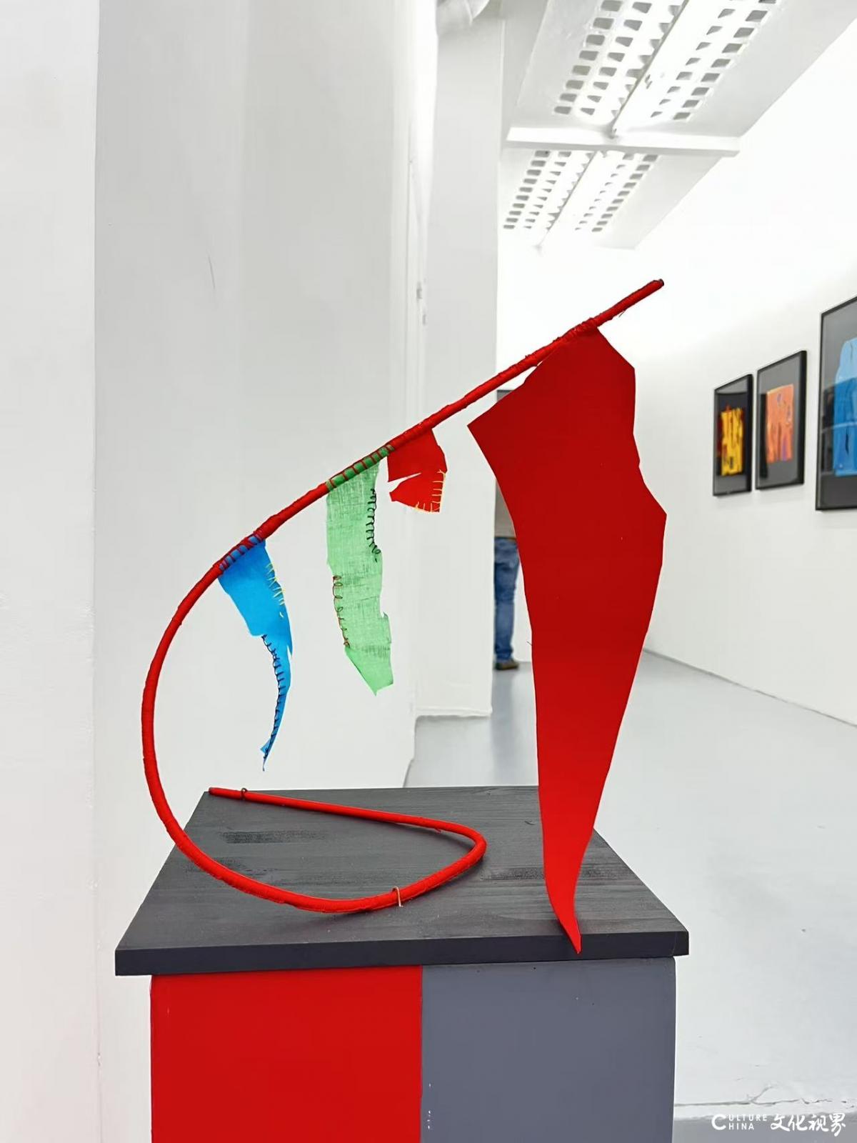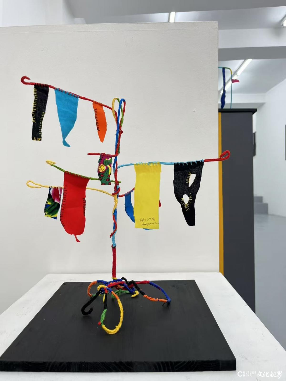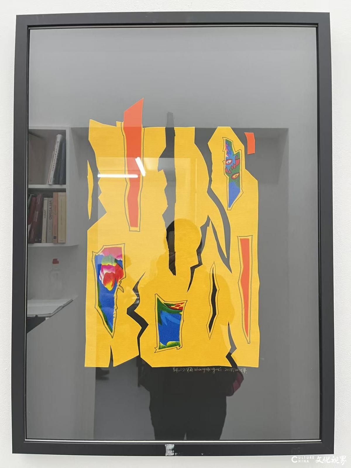 早在數(shù)年前的建筑雙年展中,她已在雕塑創(chuàng)作里初現(xiàn)自由形態(tài)的雛形,只是彼時繪畫性元素尚未全然覺醒。歷經(jīng)多次推敲,首個創(chuàng)作周期的作品終于面世,此刻的張紅梅以更強烈的藝術(shù)自信宣告:當剪裁織物擺脫具體敘事,在形態(tài)的交織、色彩的游戲與符號的神秘美感中,觀者得以迷失于純粹的視覺詩學——這些看似"只為自身存在"的形態(tài),實則構(gòu)筑了超越地域與時代的對話場域。