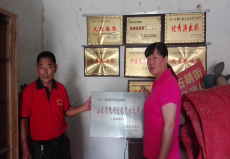胡街:自從藝術(shù)團(tuán)正式成立以來,我們參加過很多次比賽和文化節(jié),每次都挺深刻的,比如說在2008年,CCTV7曾對我們有過鏡頭的錄制。2003年,我們曾上過菏澤牡丹日報的封面。2010年,第一屆曹縣蘆筍節(jié)開幕式,由我們開幕。當(dāng)時我們從接到通知到正式表演,也就不到半個月的時間,我們邊縫制竹馬,邊召集藝術(shù)團(tuán)的人員,正式表演之前,都沒來得及彩排一次,不過大家把舞姿之類的早就銘記于心了,所以表演的很成功,雖然沒有任何報酬,但我們還是很自豪。