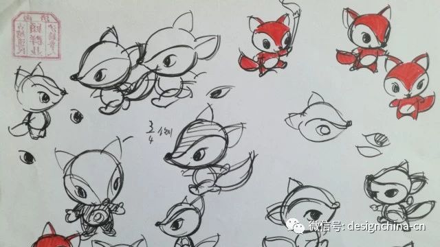 顧群業在設計國際體聯體操世界杯吉祥物龍龍時繪制的草圖