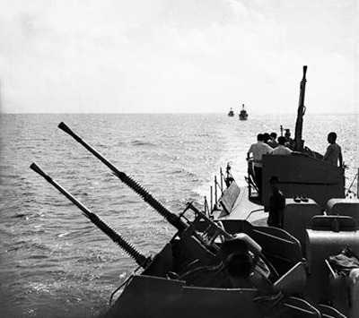 1982年,西沙群島上的兩名哨兵 1984年6月,正在進行編隊訓練的 1982年秋,落日下的西沙永興島碼頭