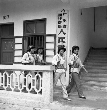 走向打靶場的西沙女民兵 什么商品的百貨商店 水艙蓋上吃飯的西沙女兵