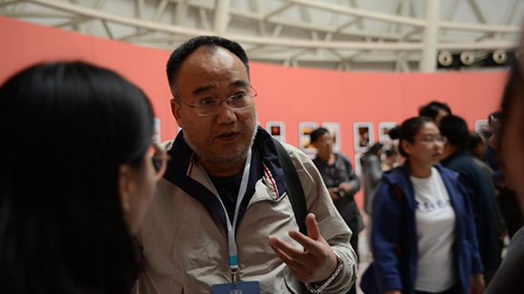 孫振軍:第一次來。我先談一下我對濟南的感覺,我感覺濟南是“齊魯青未了與一覽眾山小”精華的所在,濟南有山有水,特別是山東工藝美術學院在這么一個風景秀麗的地方。現在北方已經是初冬了,但我感覺山東工藝美術學院仍是春意盎然,生機勃勃。特別是還有青年學子和被營造的這么好的藝術殿堂。我作為一名老記者、老攝影人,感到濟南是個好地方,山工藝是個好地方,雙年展是個好展。見到你們工藝美院這些學生,很有競爭性。細節體現素質,小事折射追求。因為每個嘉賓過來大家都上去主動跟他聊天拍照,體現你們很有競爭性。現在青年學生最致命的一個問題就是不善于跟人打交道。無論攝影還是其它,根本上都是要跟人打交道,你們這一點做得很棒!
