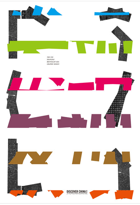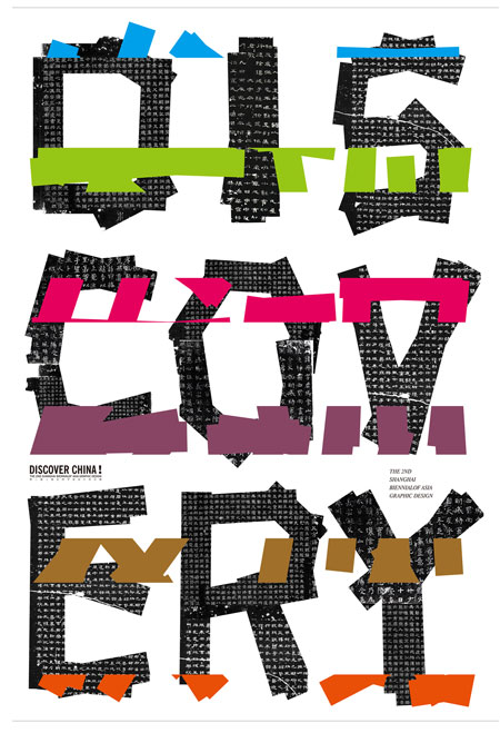 2013年11月在土耳其首都伊斯坦布爾主辦的世界設計大會他收到邀請涵時也深感榮幸。對此他向我們談到了今年世界設計大會的主題——“設計方言”,而他的作品主題則是發現中國,也是受邀參加今年上海亞洲平面設計雙年展的主題作品。這件作品運用了中國傳統碑文作為設計元素,利用國際化的視覺符號中英文結合,通過中英文字體的解構和重新組合,形成新的視覺效果。整個系列作品給人以動靜結合之感,流露出虛實相生的中國文化意蘊,體現了中國傳統文化與現代視覺文化的交融。