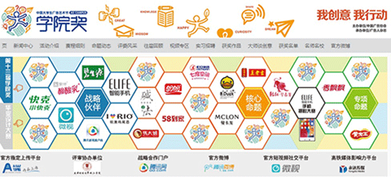 本屆學院獎預計分三輪發題,到目前為止本屆中國大學生廣告藝術節學院獎首輪開題的命題單位包含了戰略命題碧生源、金立ELIFE(含攝影);商業命題恒安七度空間、盼盼食品、B.duck、58同城、馬大姐、黃老五花生酥、香飄飄。除此以外,蒙牛酸酸乳、微視、騰訊新聞客戶端、快克藥業、銳澳雞尾酒、中國人壽、三九皮炎平、修正藥業、王老吉、迪耳藥業、曼卡龍珠寶、乾紅茶、太陽雨太陽能、創意云南、廣告人論文獎將在以后開題中與大家見面。