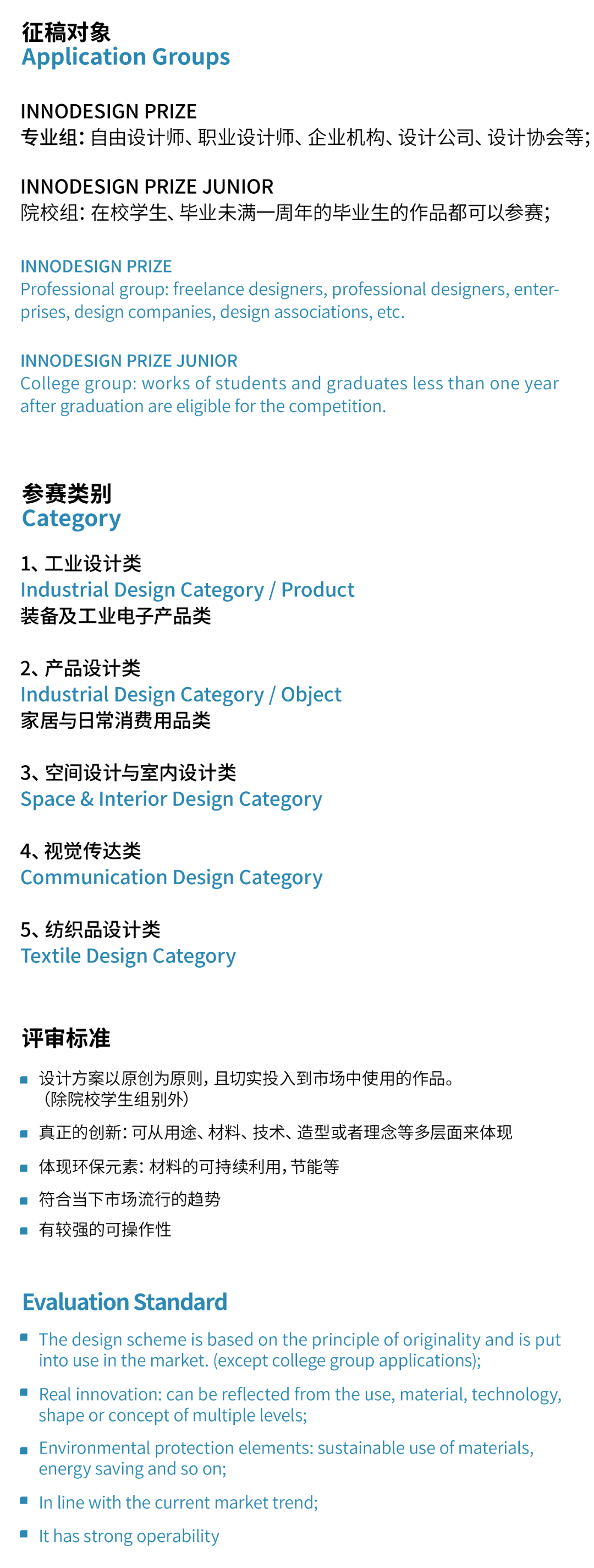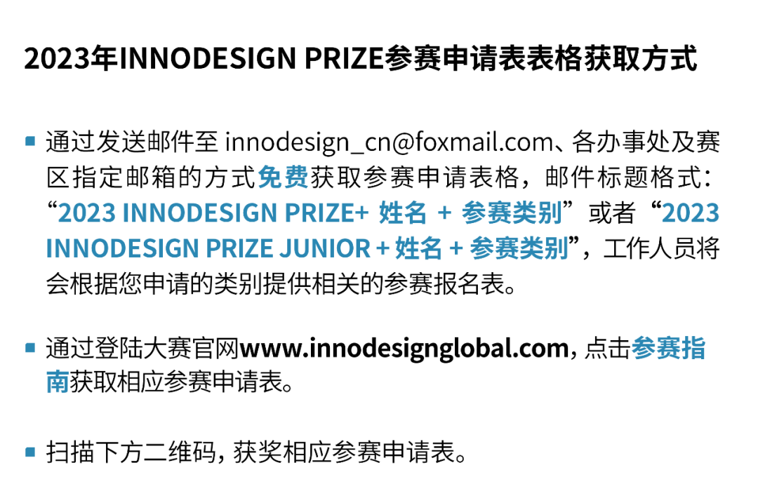 INNODESIGN PRIZE全球創(chuàng)新設(shè)計大賽組委會期待各位的踴躍參與!