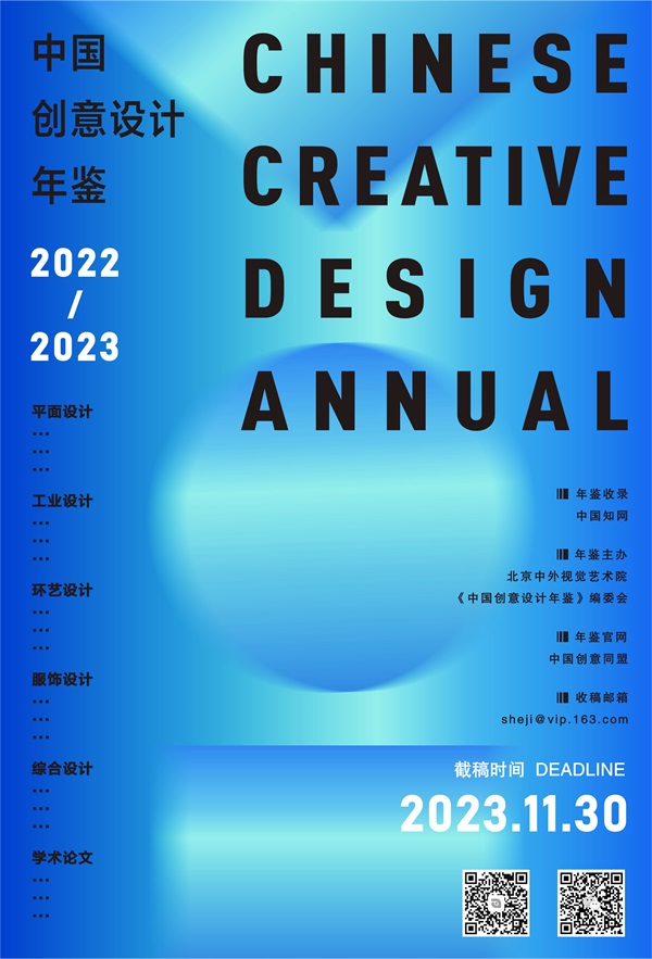 2、凡獲獎作品及論文將具備收錄《中國創(chuàng)意設(shè)計年鑒·2022-2023》的資格,正式出版發(fā)行,同時由中國知網(wǎng)全文收錄檢索。