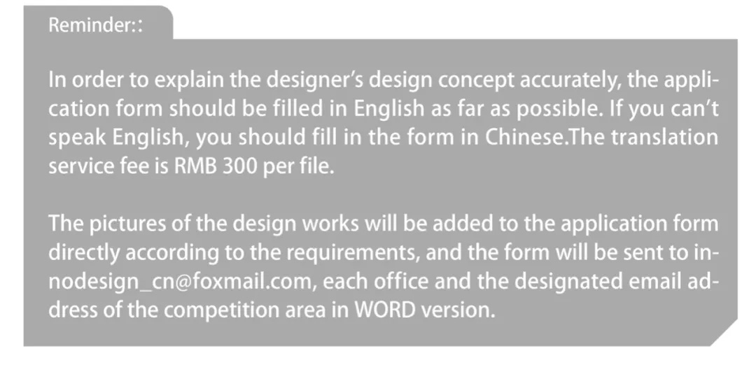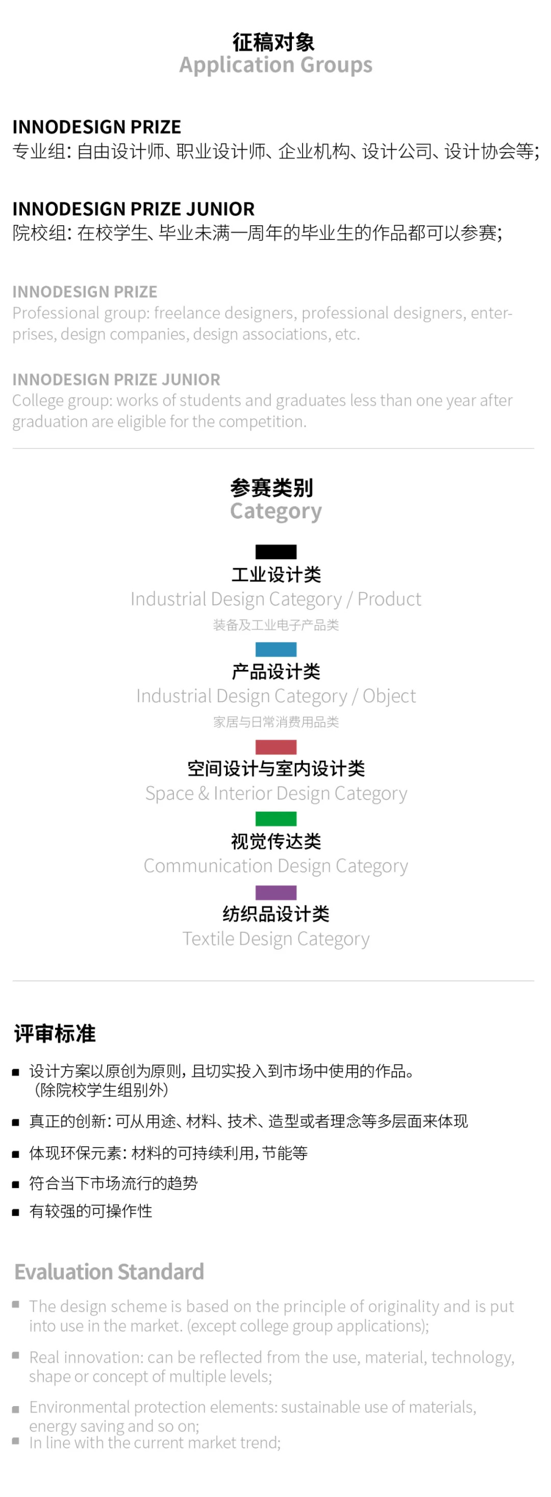 關于大賽更多詳細信息,可瀏覽大賽中方官網: www.innodesignglobal.com 如有疑問,可添加大賽官方微信INNODESIGN_CN咨詢。
