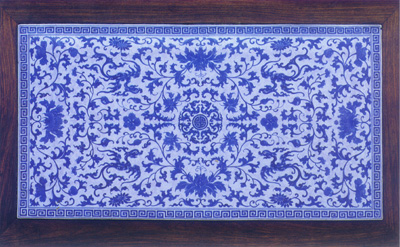 紅木炕桌上的青花鑲面、清、嘉慶(圖)