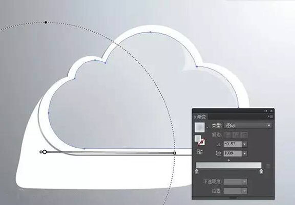 再將藍色圖形選中添加圖中的徑向漸變,值可以自己調整,效果最佳為最好
