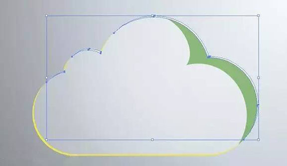 畫出模擬光源(圖中綠色部分),將藍色圖形原地復制一個,將藍色圖形和綠色圖形同時選中,使用路徑查找器-交集得到圖中綠色的圖形