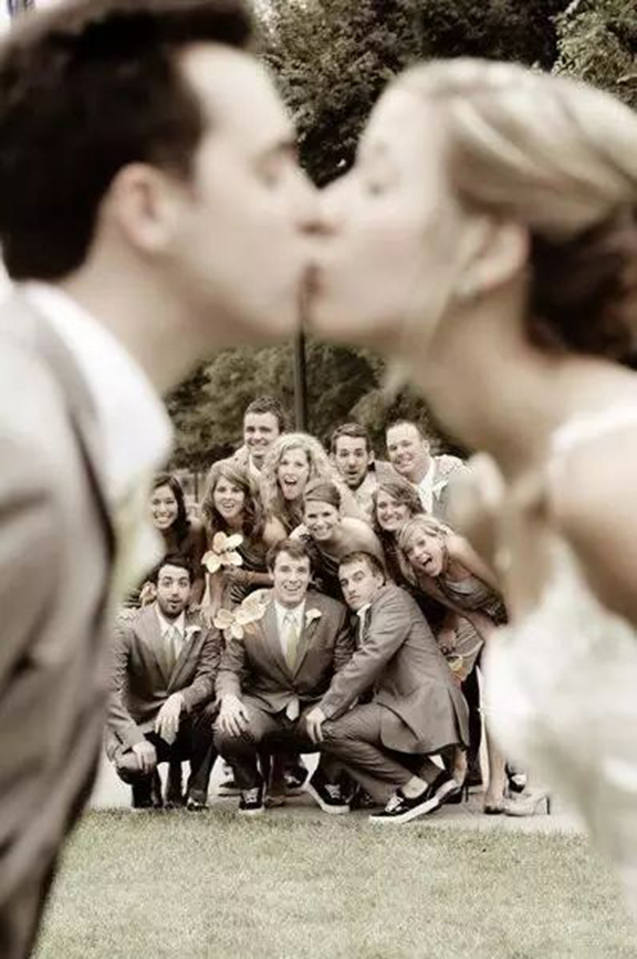 婚禮上的合影,照樣不落俗套