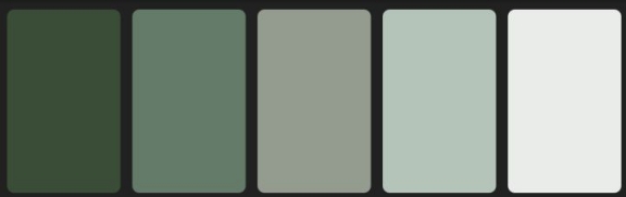 作品使用的顏色由灰白至綠色屬于同一個色系不同明度、灰度值因此相互協調。形式只有橫、縱、矩形。本身沒有裝飾的小號白色San Serif又支持了封面的大幅留白。因此所有的視覺信息很容易被歸納成一種典雅清新的日系風格,沒有破功的地方。由于視覺信息量小,觀察者的大腦可以很容易把這些信息提取、存儲、因此感到舒服而不廉價。