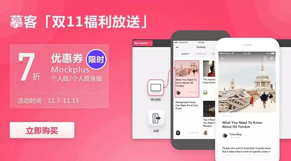 福利一: 摹客Mockplus個人版/個人終身版7折優惠!下單時輸入優惠碼【Mock1111】即可獲取。