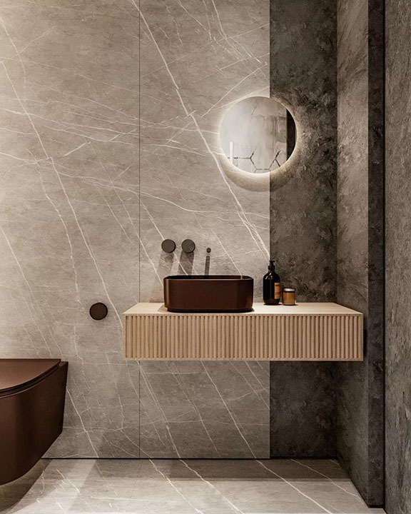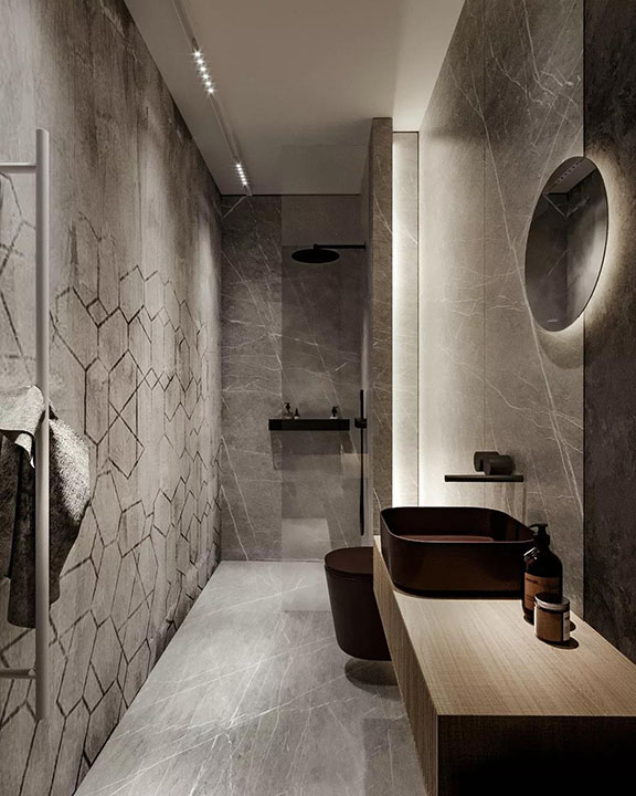 衛(wèi)生間的設(shè)計設(shè)計師通過巧妙的構(gòu)圖手段營造出靜謐的意境,水泥質(zhì)感的墻面自然樸素,讓使用者在這里產(chǎn)生放松而平靜的舒適心境。