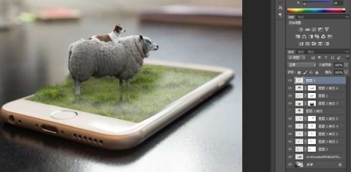 先把那只羊和狗上面摳出來,現在把屏幕鋪成草地。