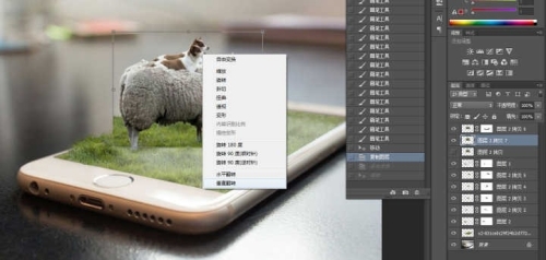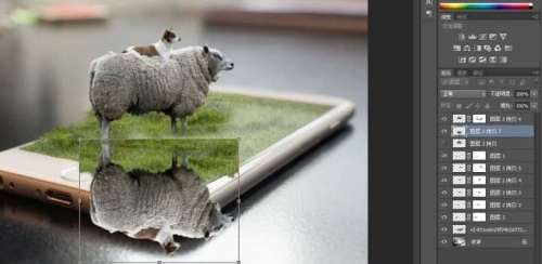 感覺屏幕是光滑的,弄個倒影吧。自由變換---垂直翻轉
