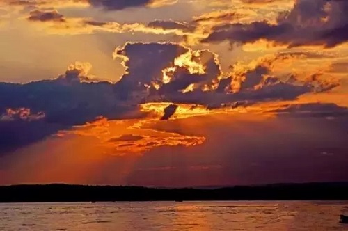 畫面下部分占據的篇幅較小上部分則大幅描寫浮云所遮住的太陽以及它放射出的光芒使用此類突出表現光線波長的取景方法也可創作出較好的日落攝影作品。