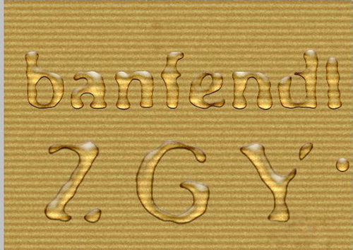 在做水滴字之前,我們可以先做一個小水滴的效果,保存樣式,之后在對要做的字體進(jìn)行簡單的濾鏡修改形態(tài),直接應(yīng)用樣式,對于以后處理水滴文字的效果會非常方便。首先我們可以先看一下效果:(水珠可以自己選擇添加的未知,ctrl+t改變大小形狀等等)