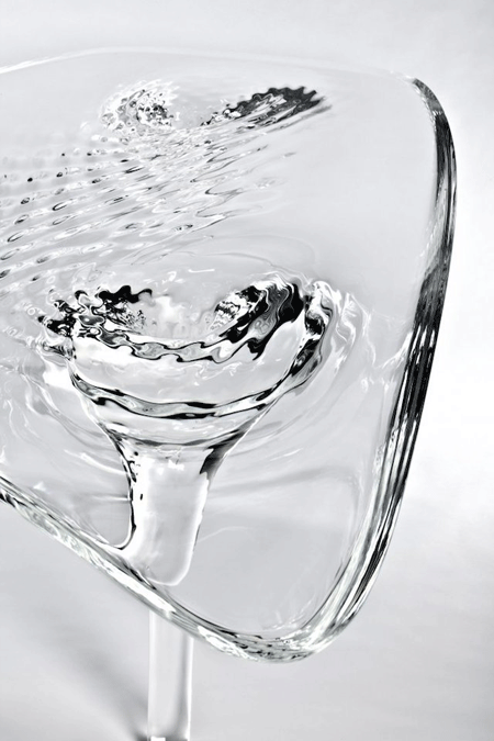 整個(gè)桌子如同冰一樣通透圣潔。又如水一般柔美精妙。水的漣漪在桌面波動(dòng),你能感受到水珠沿著桌面桌腿在流動(dòng),凝結(jié)成冰,并最終成為桌子的桌腿。